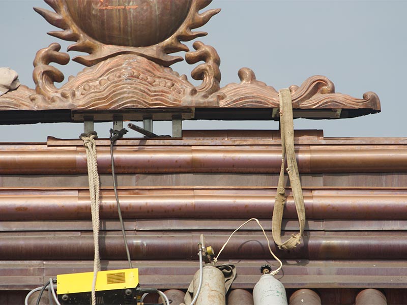 台南案場採用日式本葺瓦搭配精緻銅瓦,重點在於呈現傳統建築的莊嚴美學與工藝細節、瓦片排列的系統性與收邊防水處理。互茂工程具備豐富的屋頂瓦工程與屋瓦維修經驗,能針對不同建築需求提供陶土瓦或金屬瓦規劃。施作時重視瓦片排列與系統防水,確保屋面結構穩固並兼具建築美感,展現多元屋瓦工程的專業實力。