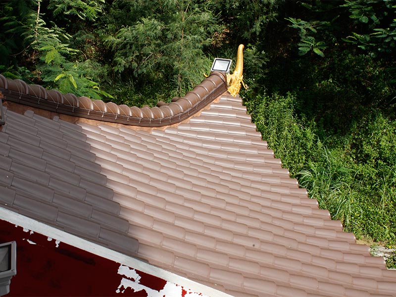 本工程選用具備優雅曲線的深棕色 S 型瓦進行施作。S 型瓦特有的波浪造形不僅能增添建築的動態層次感,更能提供優異的排水效率。施作過程中,我們針對 S 型瓦的排水路徑進行精確配置,結合嚴密的細節收邊,確保住宅屋頂在追求外觀美感的同時,具備高效的排水效率與長效防水防護。